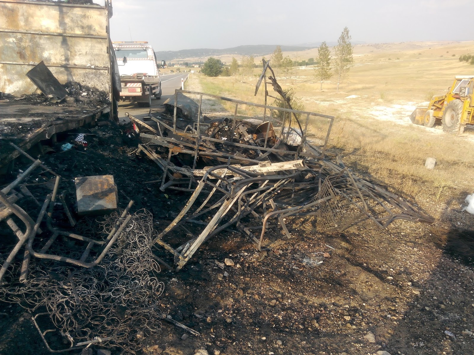 Eşyalar yüklendi ve kamyon bizim önümüzden yola çıktı. Kamyon Bursa'ya Dumlupınar üzerinden gidecekti; biz de geze geze Gediz Murat Dağı üzerinden gidelim dedik. Saat 16:00 sularında telefon geldi şoför İsmail'den ve aracın direksiyon pompasının patladığını iddia ederek 1.000,00 TL para istedi. Ben de yolda olduğumuz için ve durumu da tam anlayamadığımız için kayınpederimle de görüşmesini istedim. Bu süreçte birkaç telefon görüşmesi yapıldı. Çok uzatmayacağım 18:00 civarında tekrar telefon geldi ve eşyalarla arabanın yanıp kül olduğunu söyledi şoför İsmail. Biz de o sırada Altıntaş'taydık. Hemen alelacele geri döndük. Olay yerine gittiğimizde her şey yanıp bitmişti. İtfaiye gelmiş gitmiş ve sadece jandarma vardı. Adamlar sanki bilerek yakmışlar gibi çok rahattılar. Orada öğrendik ki bu adamlar bizden 1.000,00 TL para istediğinde yangın zaten olmuş ve 1.000,00 TL para koparma derdine düşmüş insanlıktan çıkmış yaratıklar. Orada jandarmaya ifade verirlerken zararımızı karşılayacaklarını; eşyaların sigortalı olduğunu ancak poliçenin de yandığını falan söylemişler.